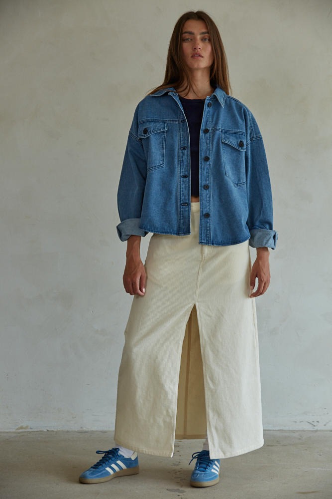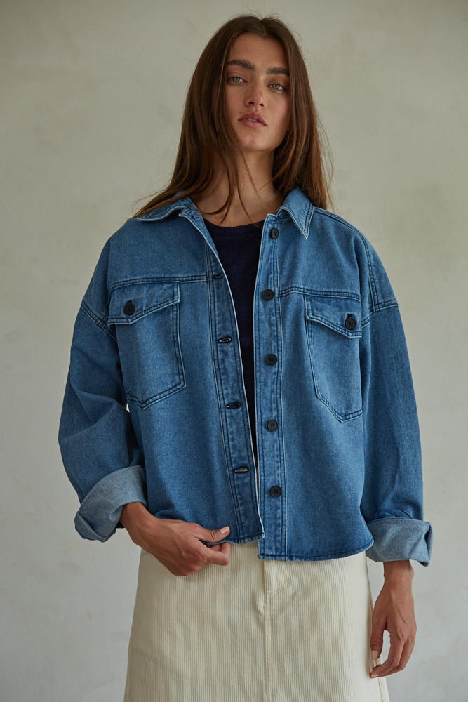 Layer this denim shirt jacket over anything and everything this season for an effortlessly cool look.