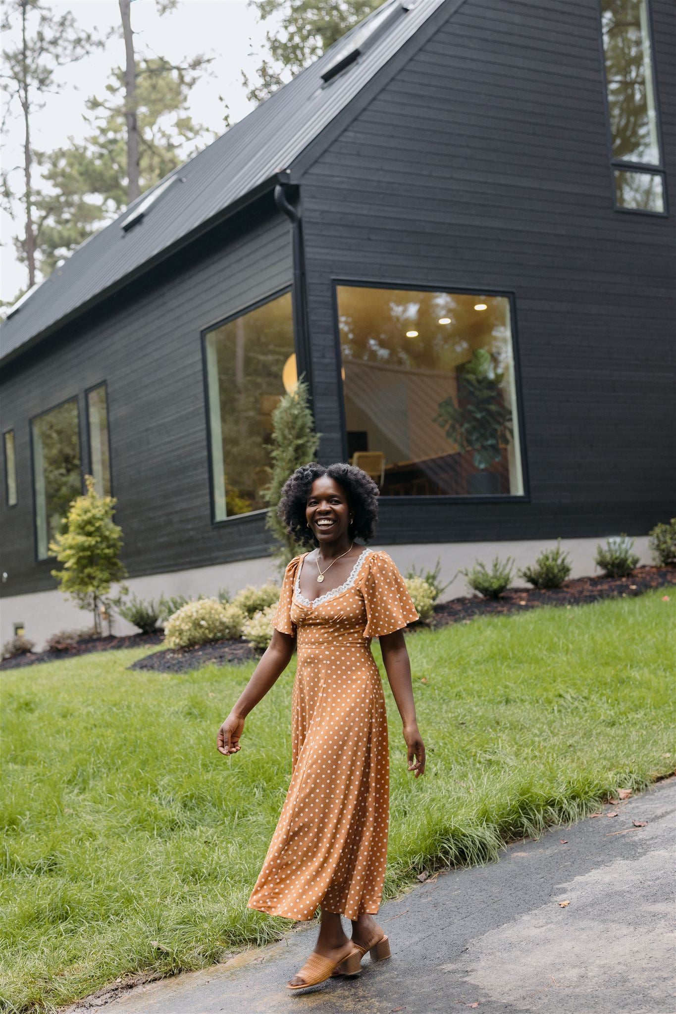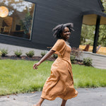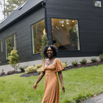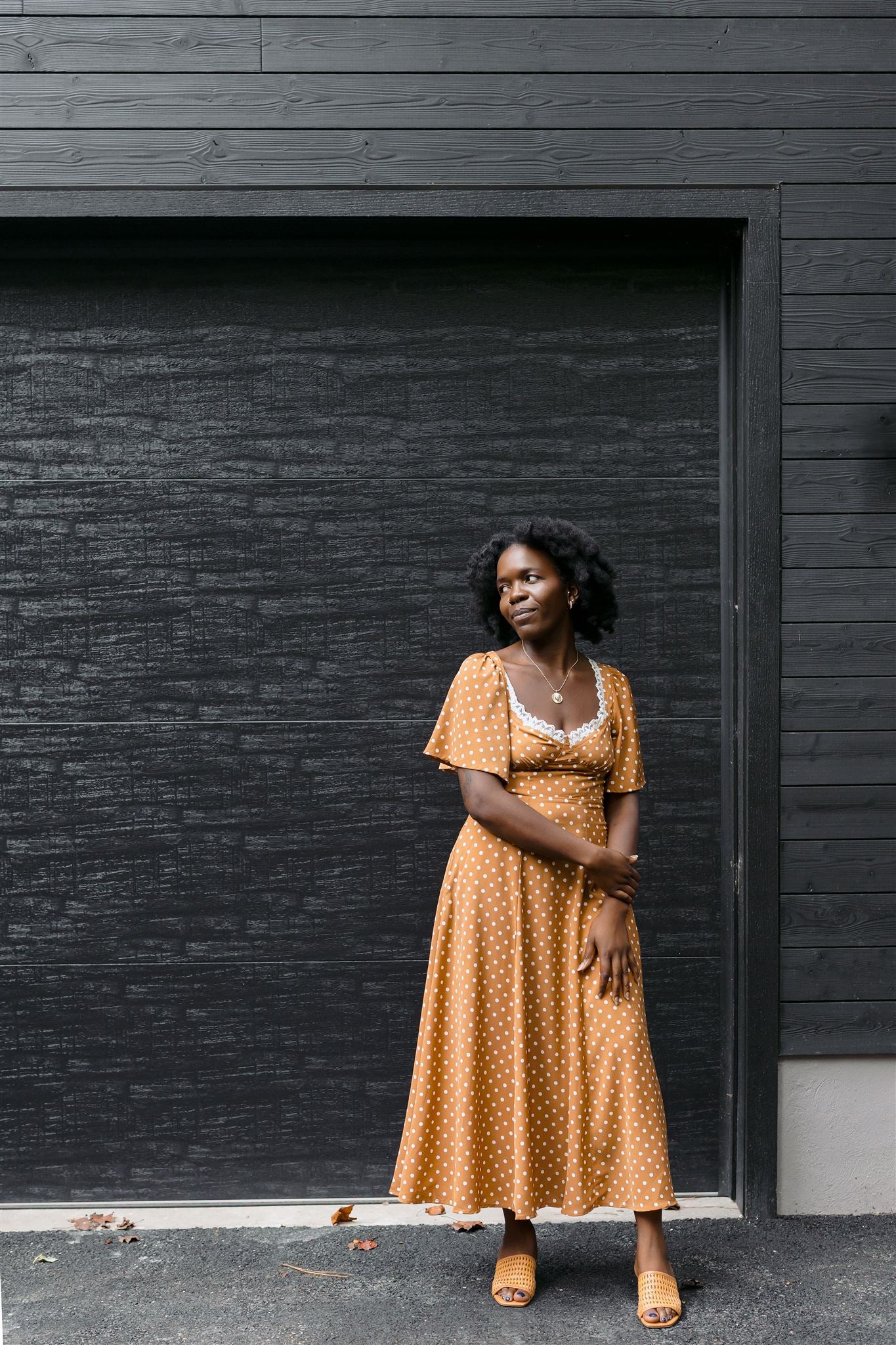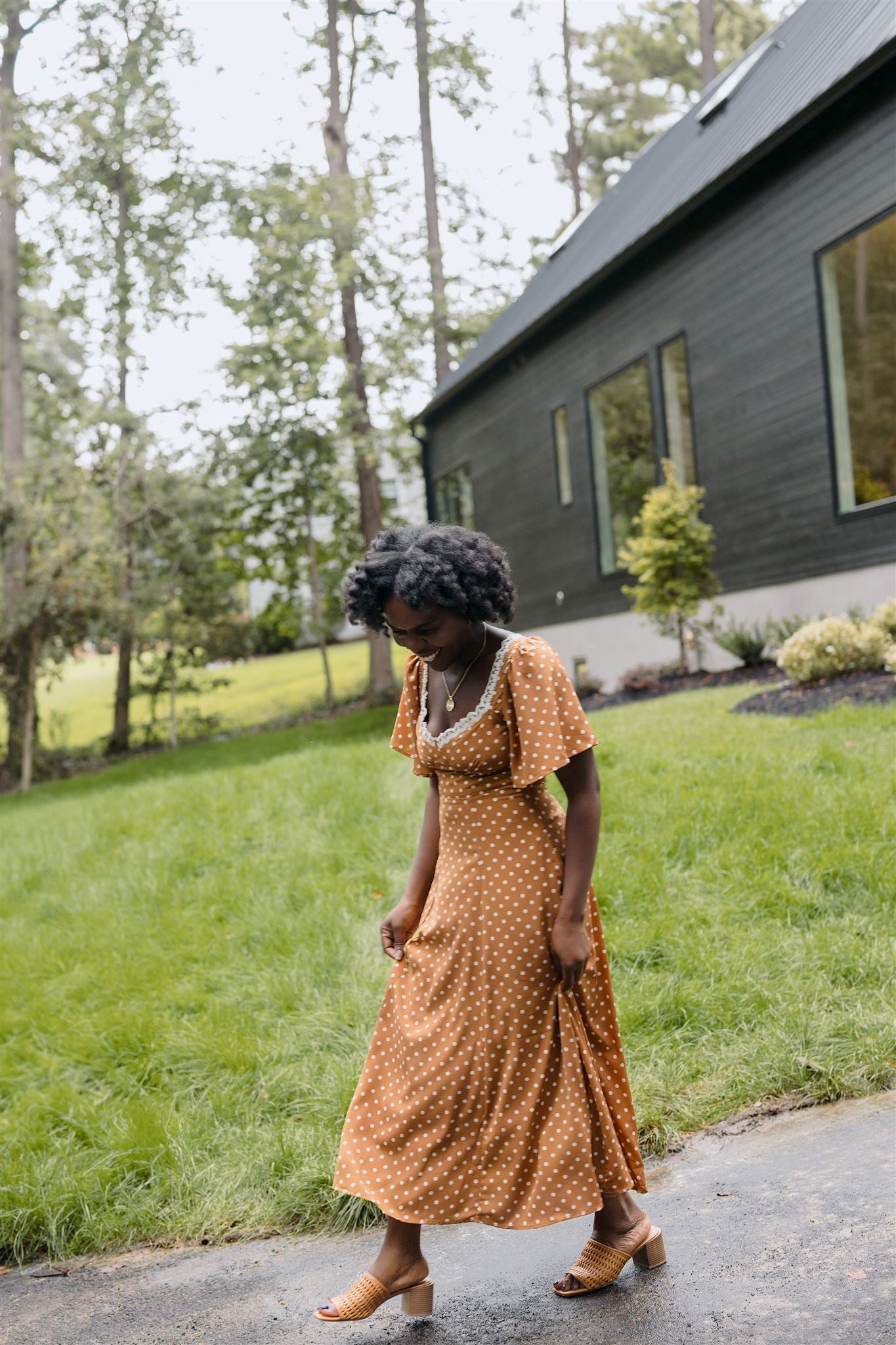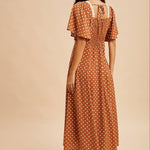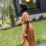This vintage-inspired midi dress features a sweetheart neckline with delicate lace trim, flutter sleeves, and, of course, pockets.