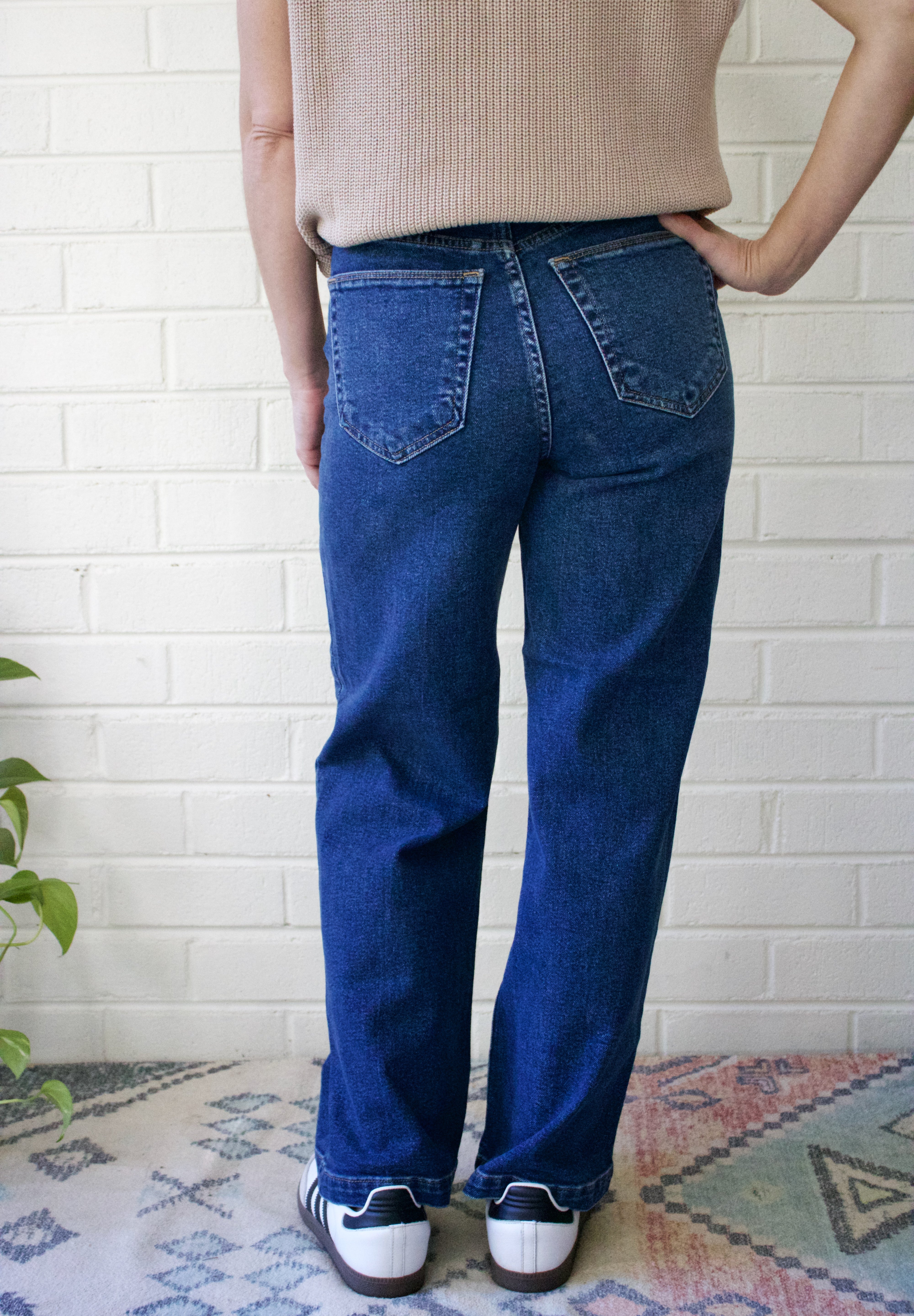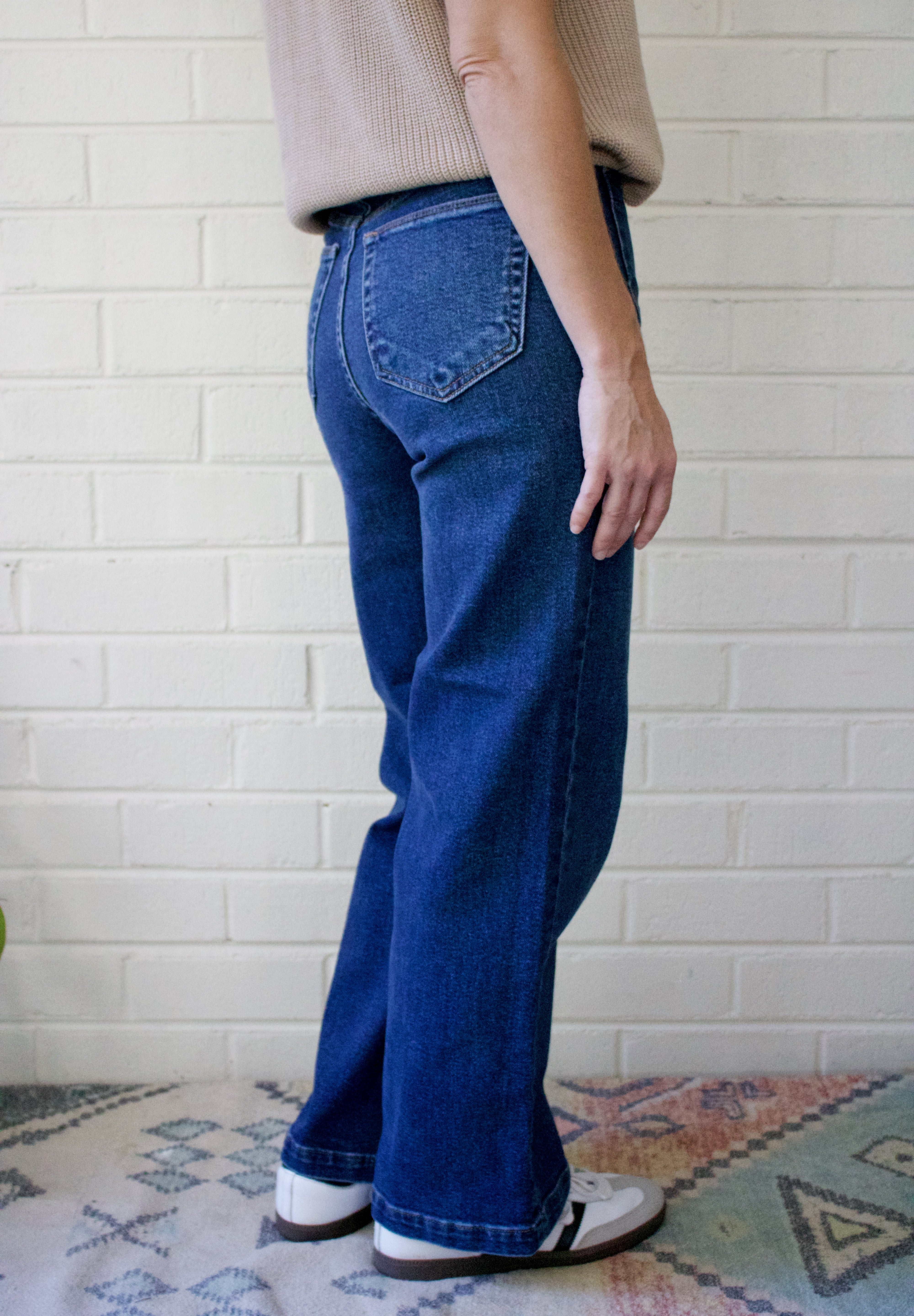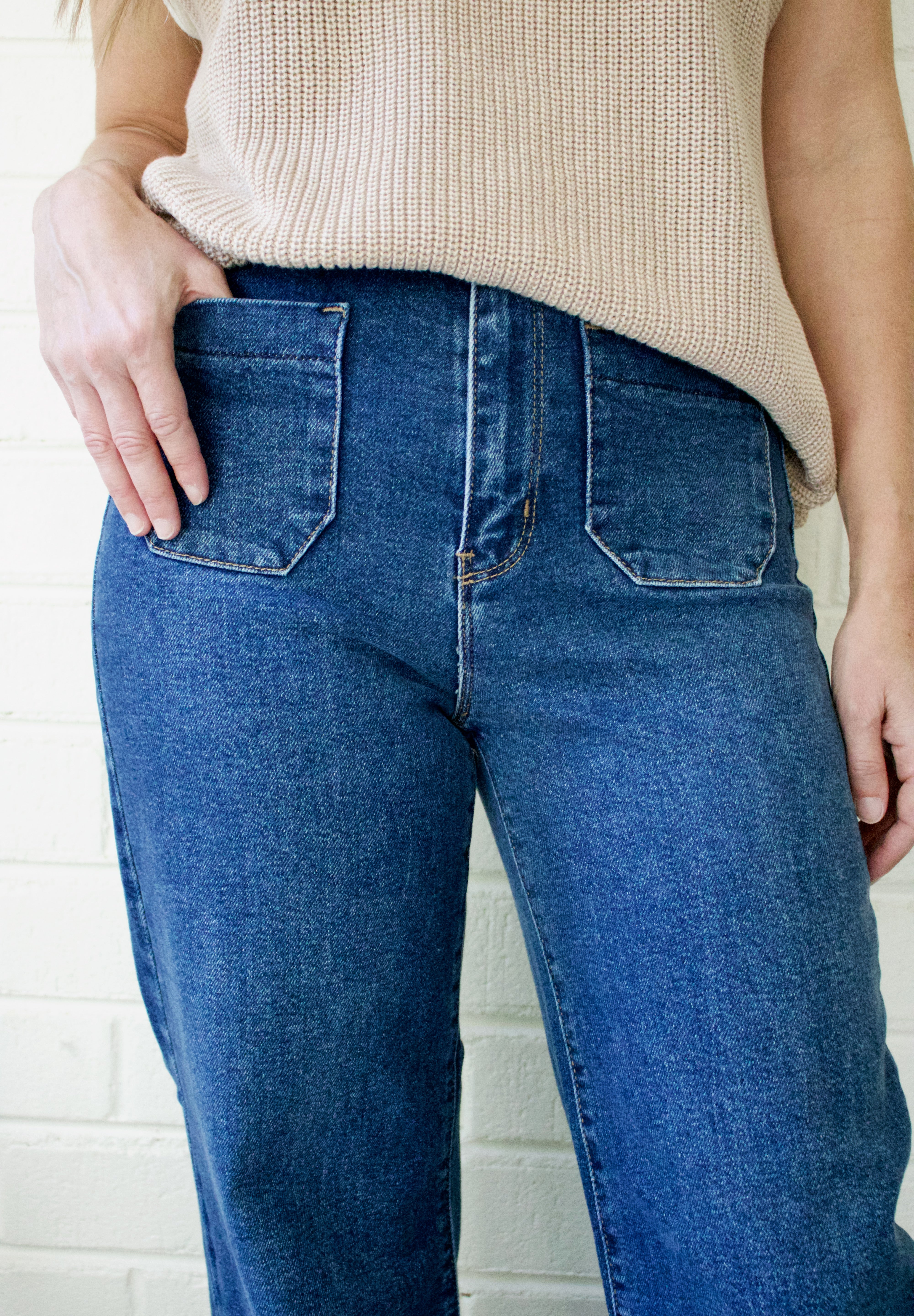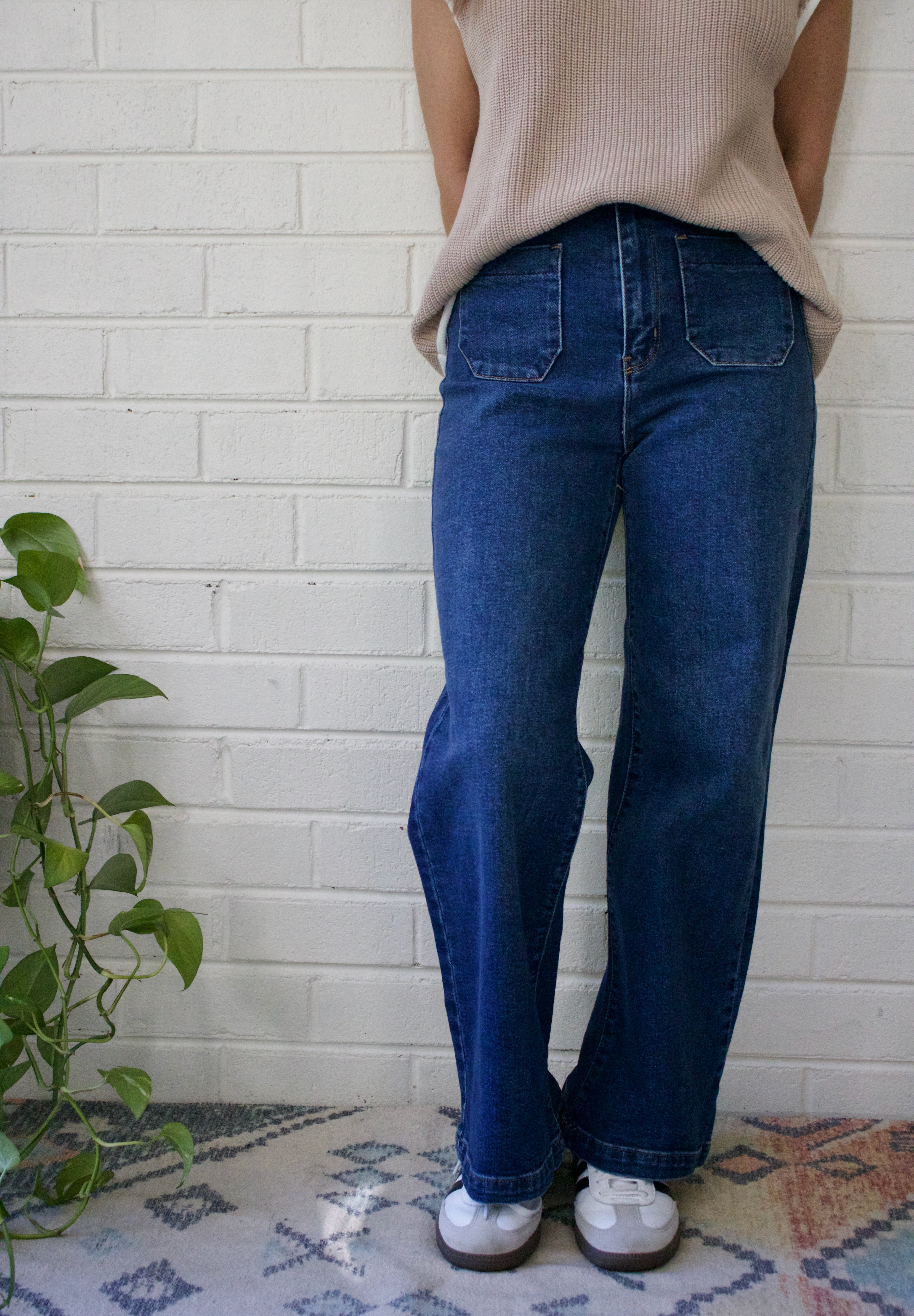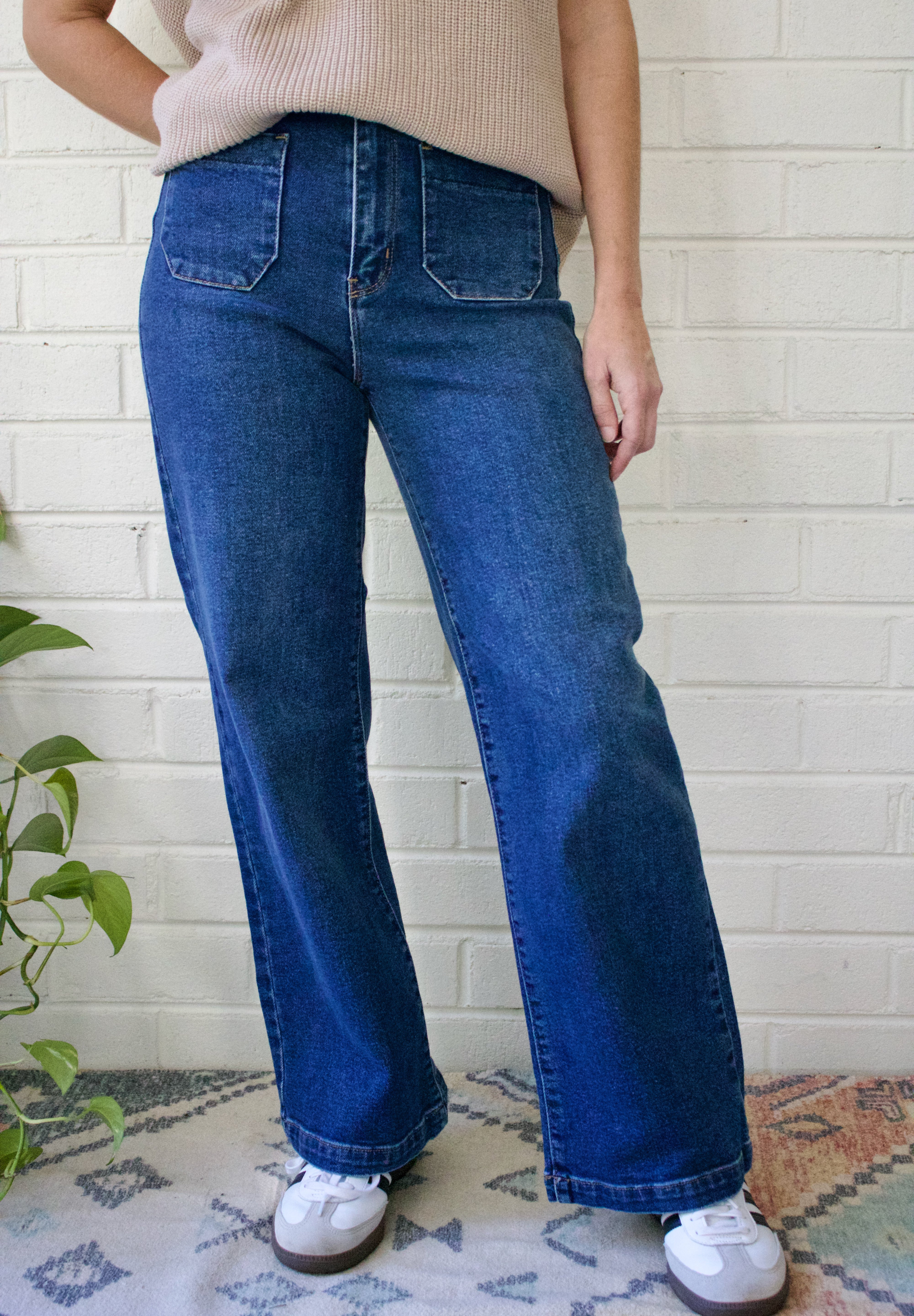 Birdie Patch Pocket Wide Legs in Dark Denim
