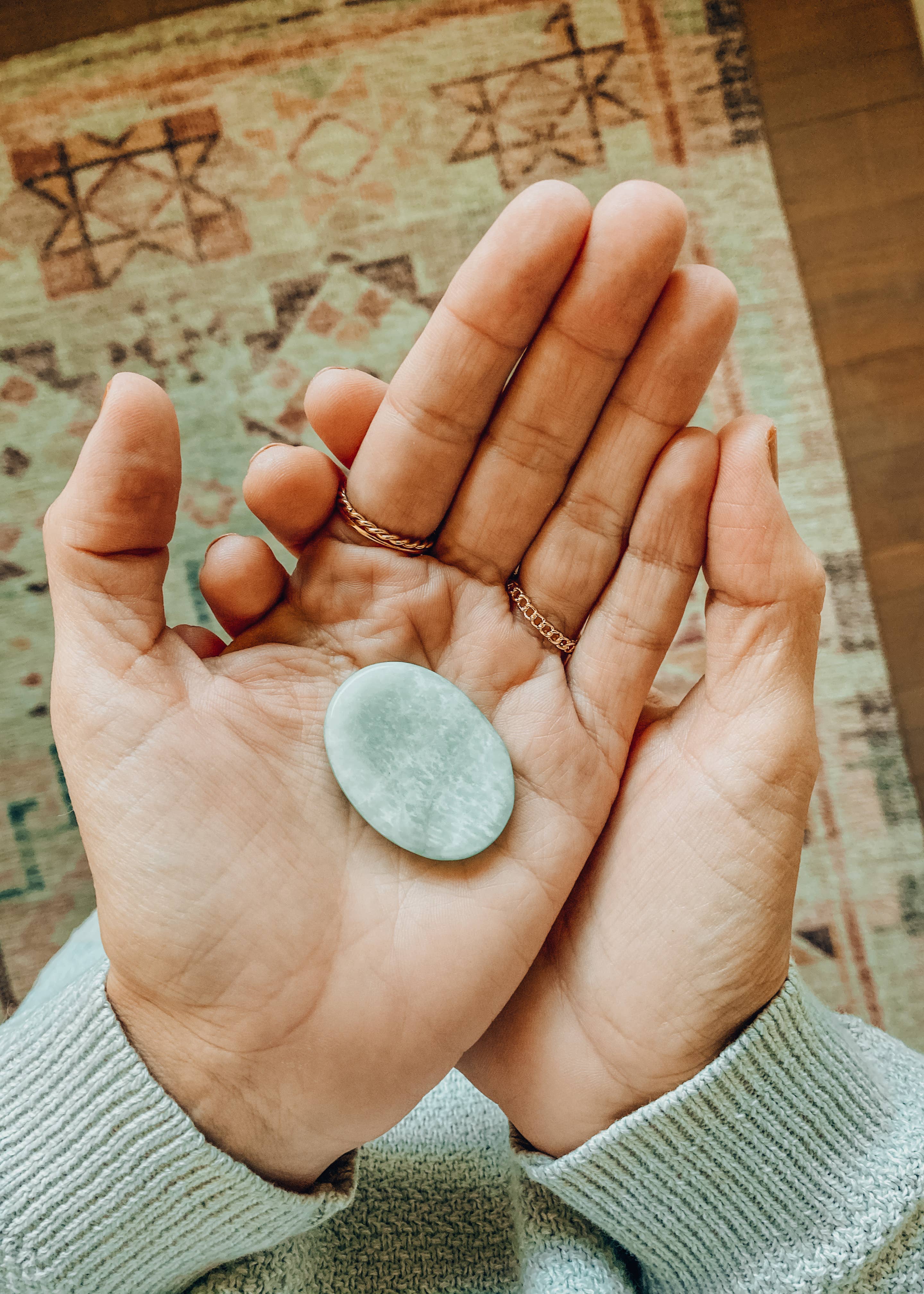 Hold firmly in your palm for several deep breaths, focusing on the light and energy of the Amazonite to spark a fresh viewpoint.