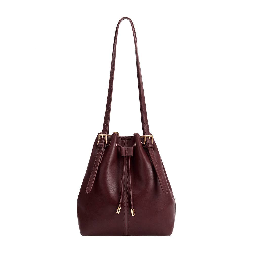 Sleek, structured, and sustainably made, the Sally Shoulder Bag features a roomy interior, adjustable straps, and a removable zip pouch to keep you organized. Finished with gold-tone details and a soft drawstring detail with a magnetic closure.