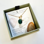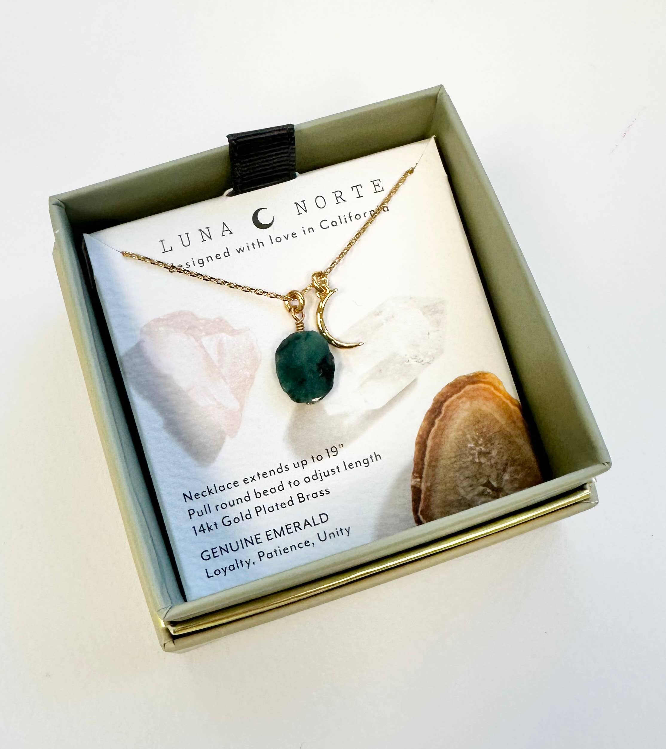 A delicate celestial-infused necklace perfect for layering or wearing on its own. Thought to bring good fortune and positive energy to its user, emerald stones are known to help strengthen friendships, attract love, and encourage success.