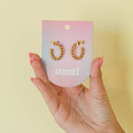 These are the absolute cutest staple earrings! They're the prettiest simple twisted style golden hoop. Because they're stainless steel, they are hypoallergenic/water resistant and perfect for any occasion!