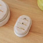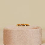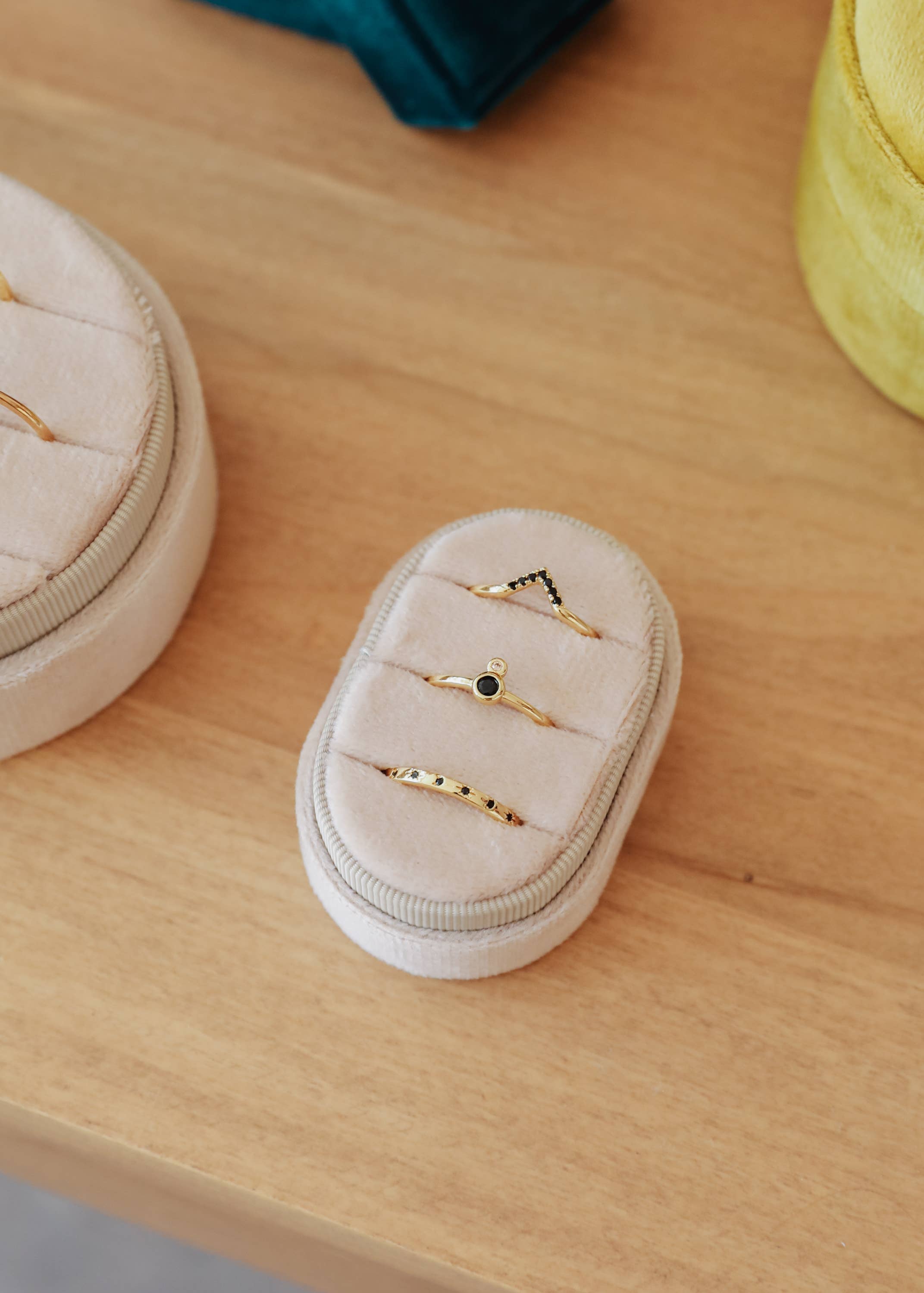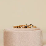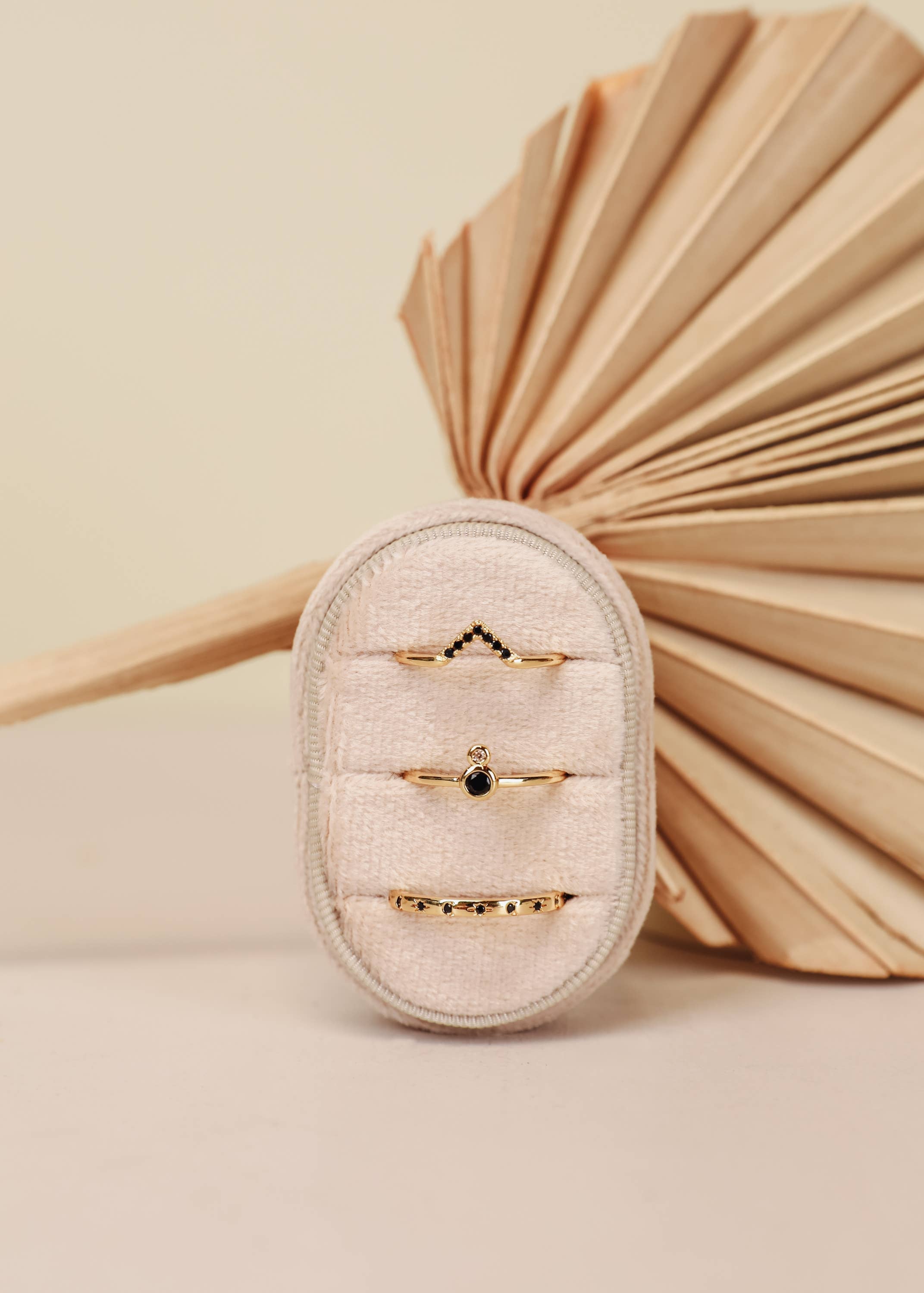 Black tiny moons and stars encircle a band of gold, bringing their ethereal quality into your new favorite ring stack and a gentle reminder to look up and embrace the universe. Tarnish Free - Long lasting protective coating safeguarding your jewelry from sweat, water, and more. 5x more gold that standard 18k gold plating over brass Hypoallergenic – Lead Free Black Cubic Zirconia Band width approx. 2mm