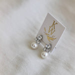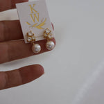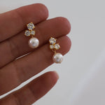 The Dahlia Studs are a beautiful addition to any look-- featuring a cubic zirconia cluster stud with a drop pearl, you can't go wrong with this elegant piece!