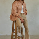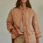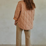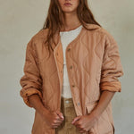 This salmon-hued quilted jacket is perfect as a light layer on cool days or layered with a sweater in colder weather.