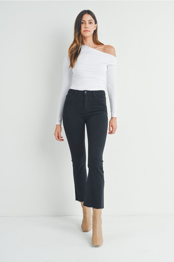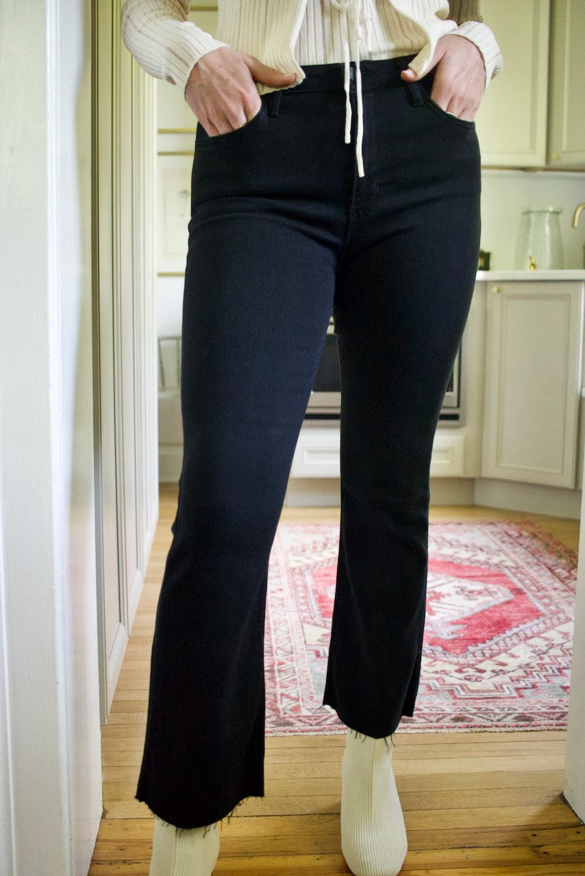 We love how well these black kick crops pair with ankle boots, loafers, and low-profile sneakers alike. Made of the same soft, stretchy black denim as our Holland Cropped Wide Legs, these are sure to be a new Dottir fav.