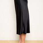 This satin bias midi skirt is the perfect piece for elevating your favorite sweaters this season.