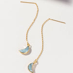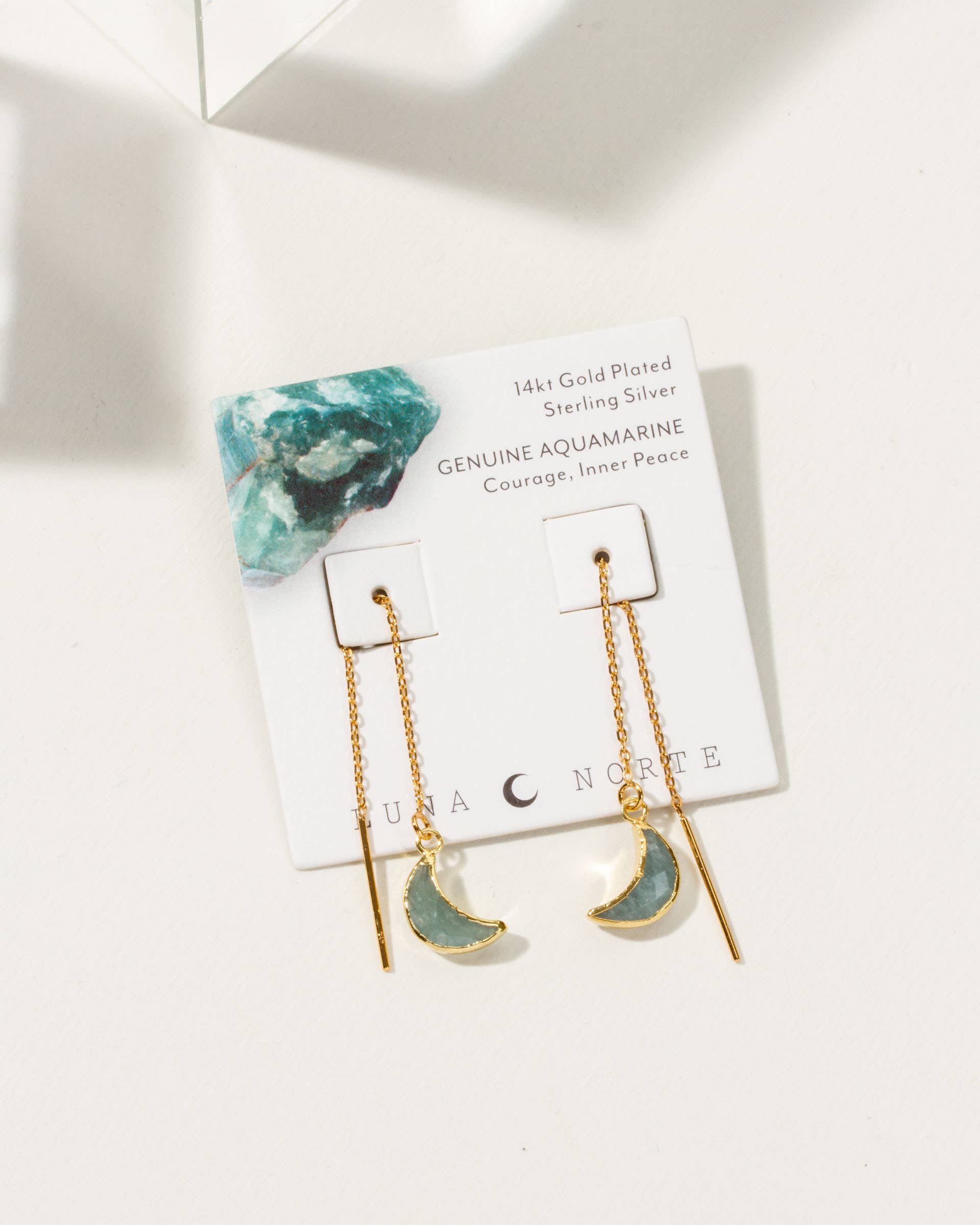 These 14kt gold plated sterling silver threader earrings feature a genuine aquamarine crescent store and are sure to dazzle.