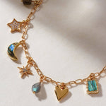 Mystical, luminous, and endlessly captivating—the Lost in the Cosmos Charm Necklace is designed for those who love celestial elegance with an ethereal twist. Showcasing labradorite in all its brilliance, from faceted gems that catch the light to high-polish stones that reveal deep, shifting flashes of color, this piece embodies the magic of labradorescence. Interwoven with celestial and heart charms, this necklace celebrates cosmic beauty and intuitive energy. Labradorite is known as a stone of transformation and wonder, perfect for customers drawn to meaningful, eye-catching jewelry.