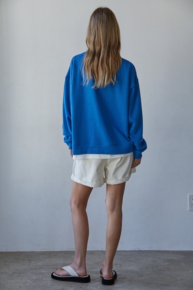 This cozy sweatshirt features a faux t-shirt collar and bottom hem to give you an instant layered look.