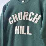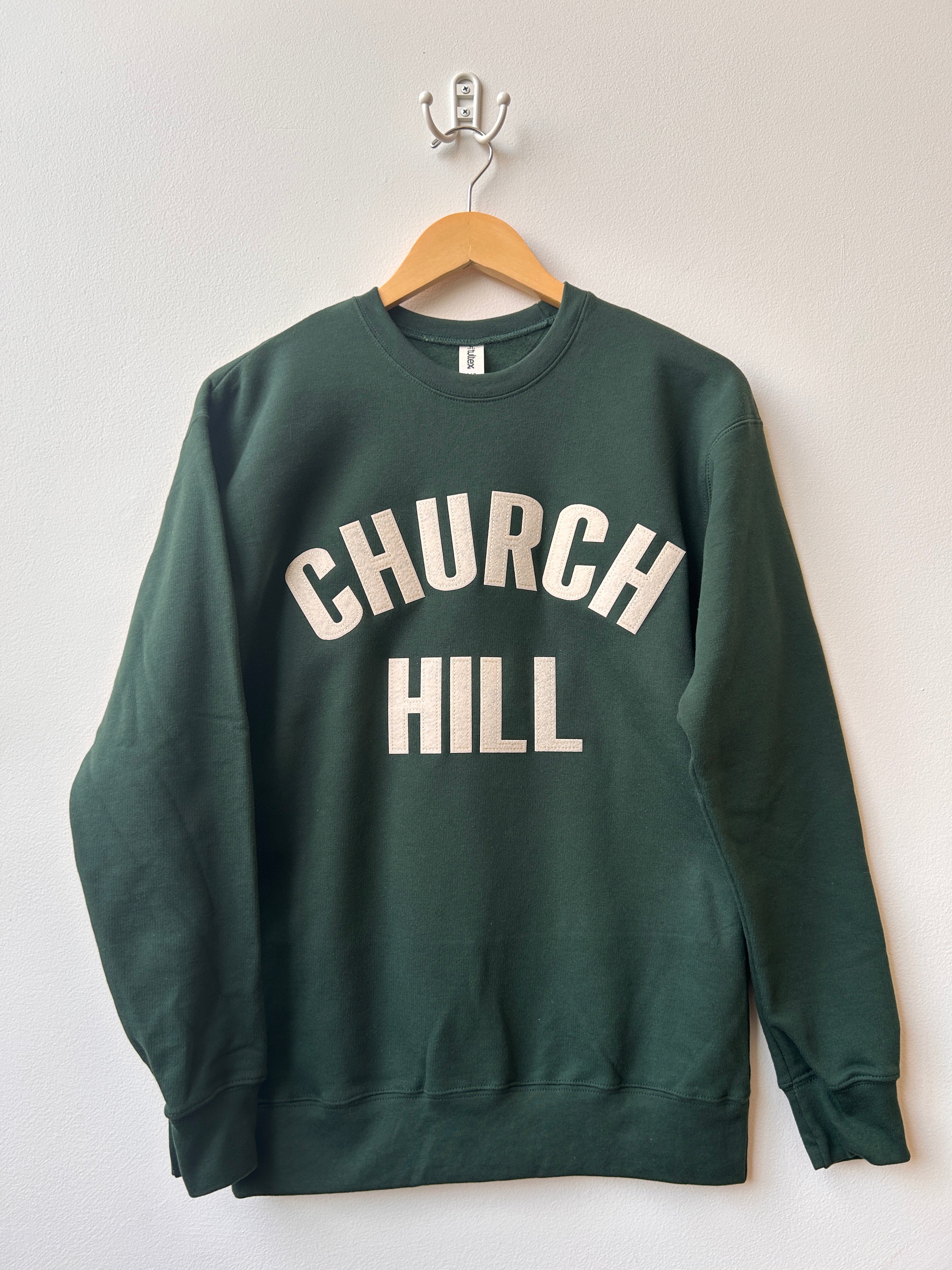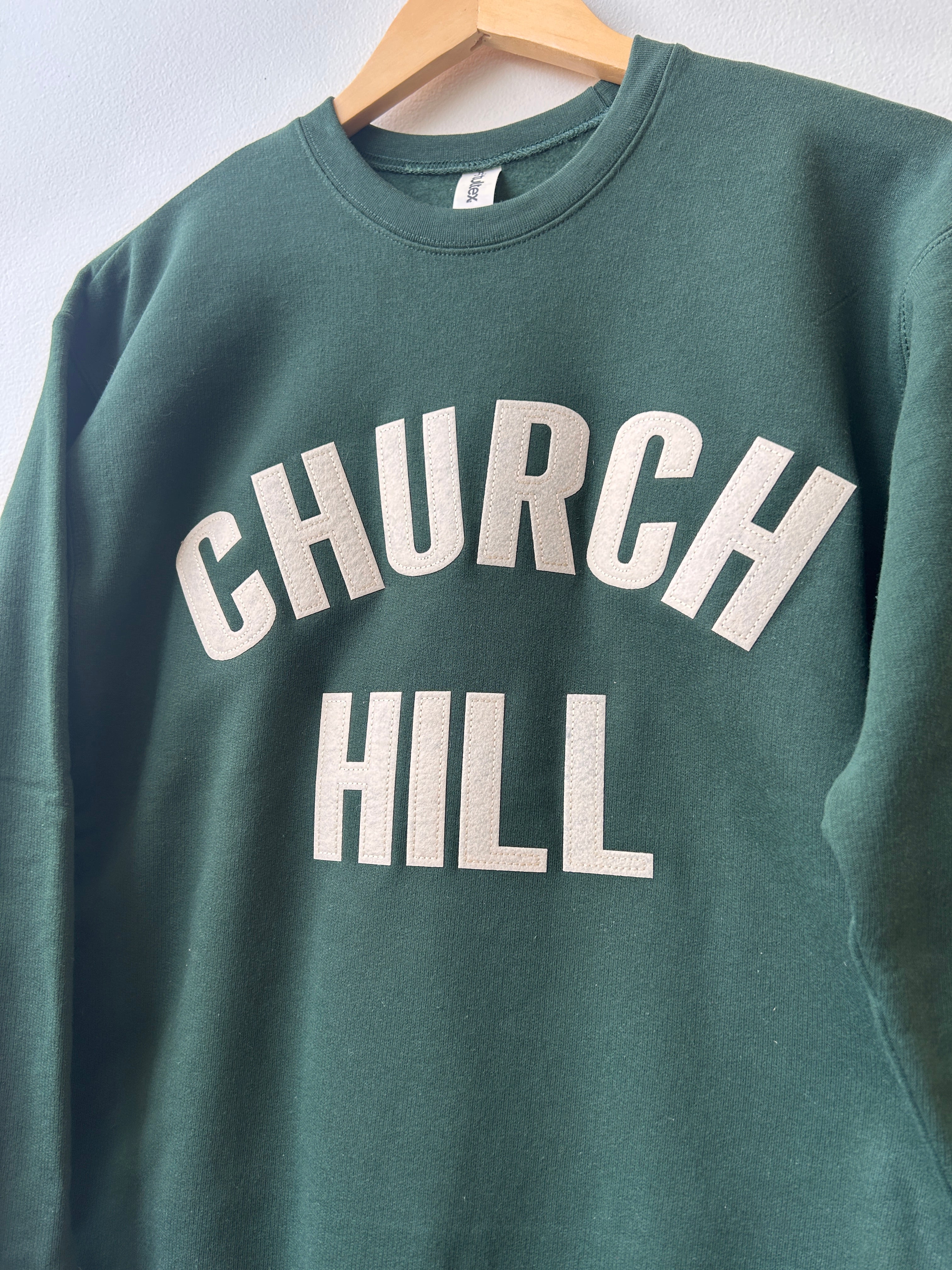 Show your Church Hill pride in this hunter green fleece sweatshirt. You won't find this one anywhere else-- it was crafted just for Dottir by Local Supply Club in Lawrence, Kansas!