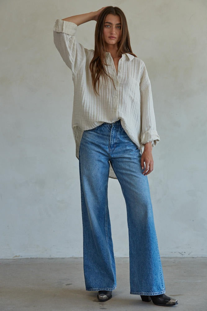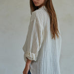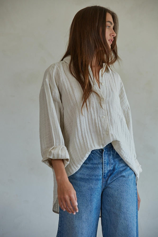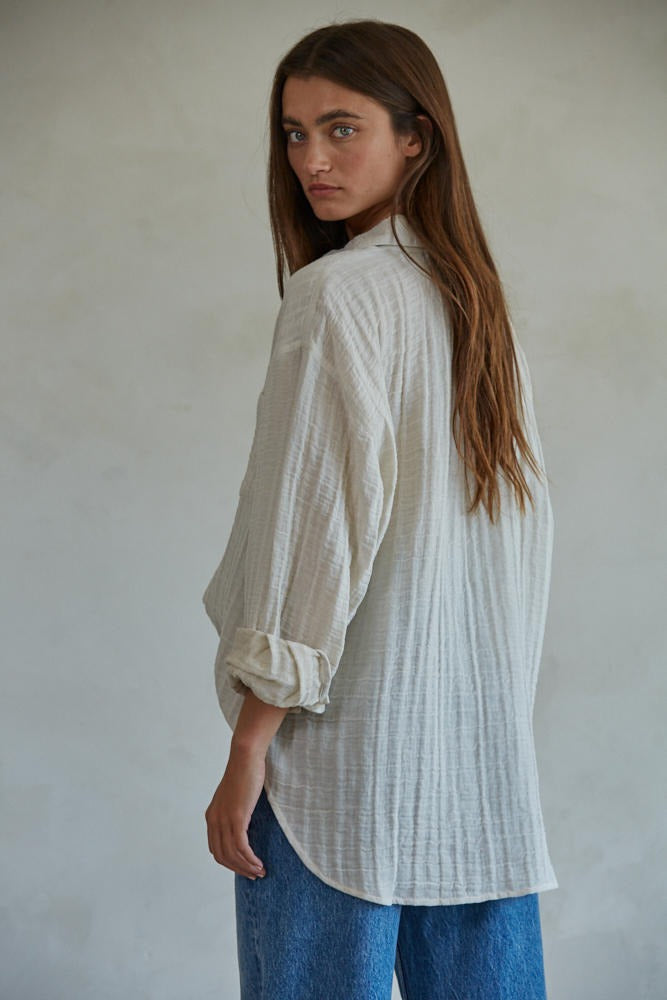 This airy buttondown will become your go-to layer every season-- from a beach coverup to a winter layer, its versatility makes it the perfect wardrobe staple.