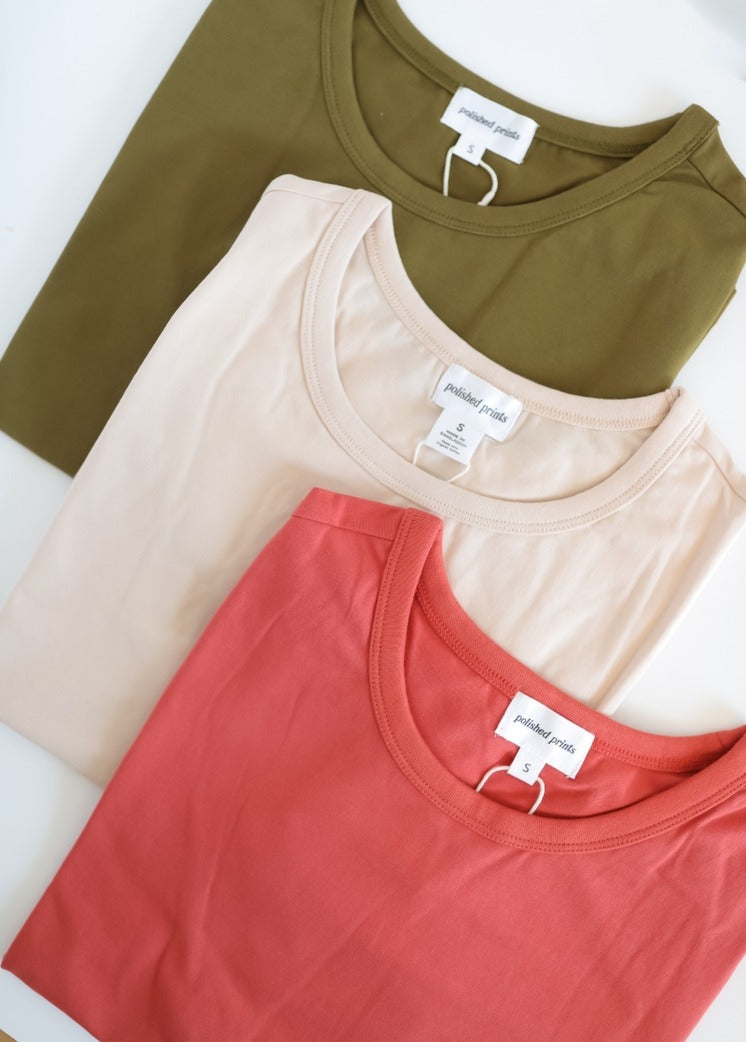 Say hello to your new favorite tee! The Perfect Crop (also known as the “Mom Crop”) from Polished Prints is a boxy tee designed to hit at the right place. Available in sizes extra small through 3X and seven colors that are perfect basics: olive, ginger, goldenrod, shifting sand, bone white, tea, and vintage black.