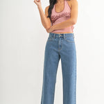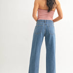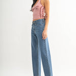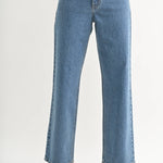 A retro straight jean with full-length (wider than average) legs. Sitting at your true waist, this pair comes in a vintage-inspired medium wash.